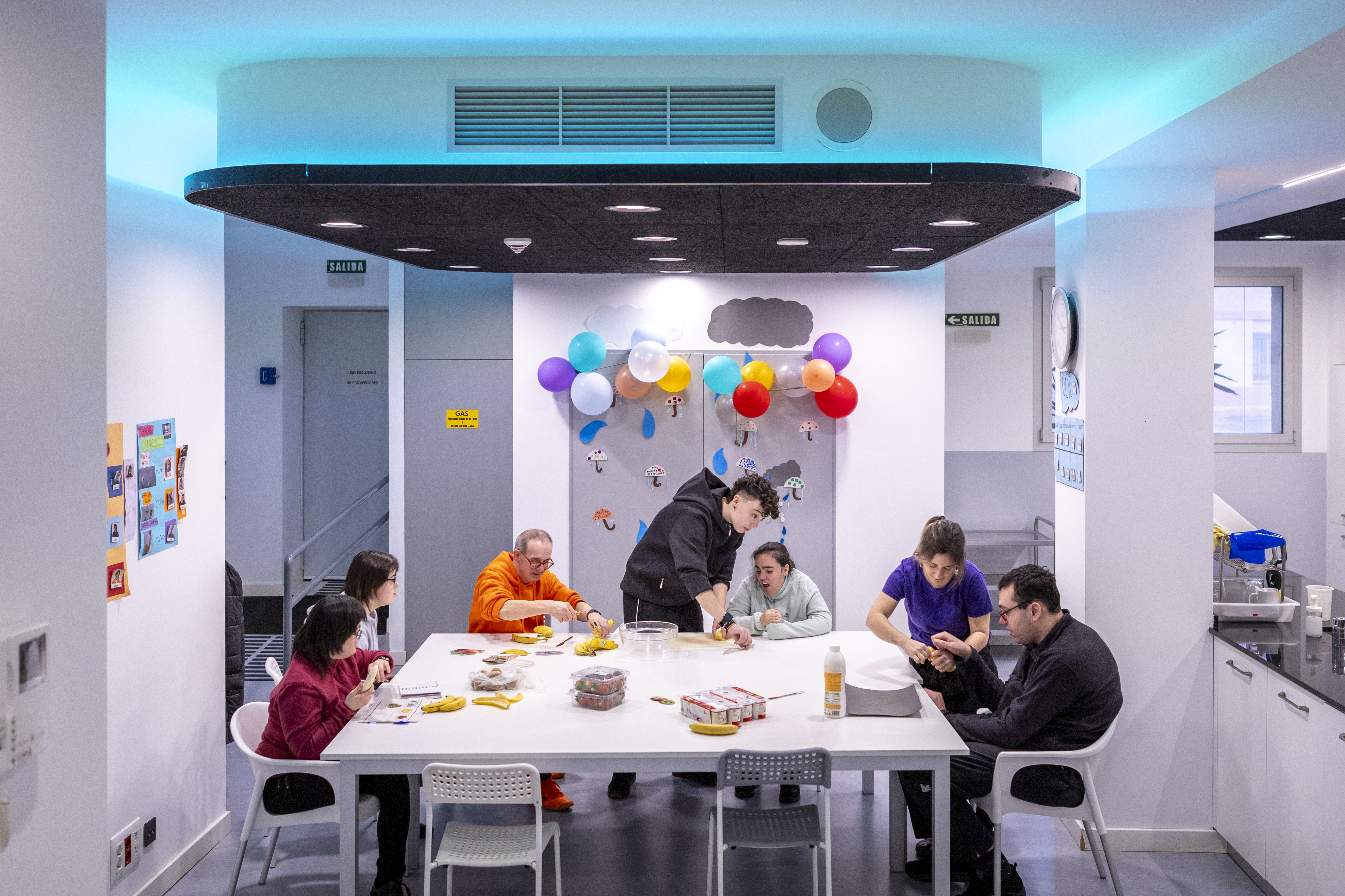 Cuatro personas atendiendo en una clase en el centro de educación especial Río Irati