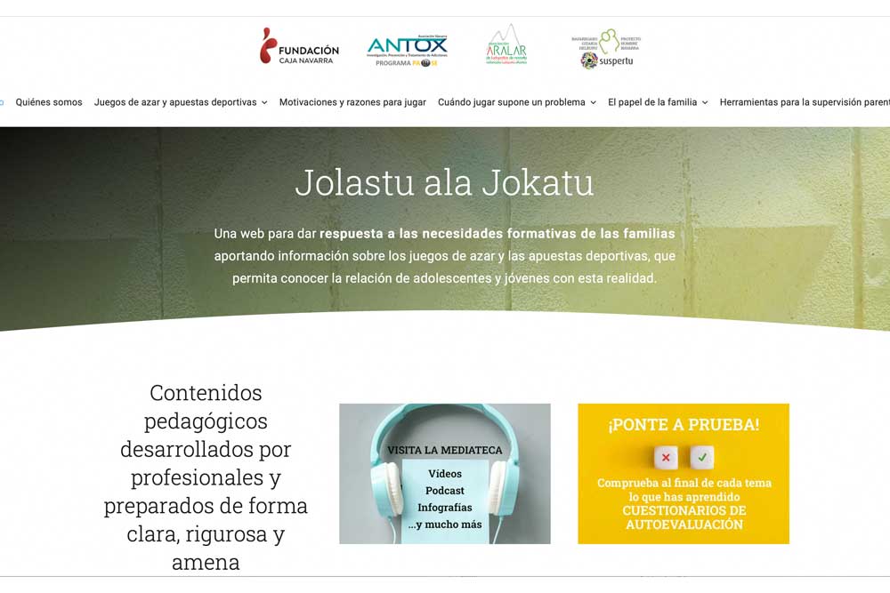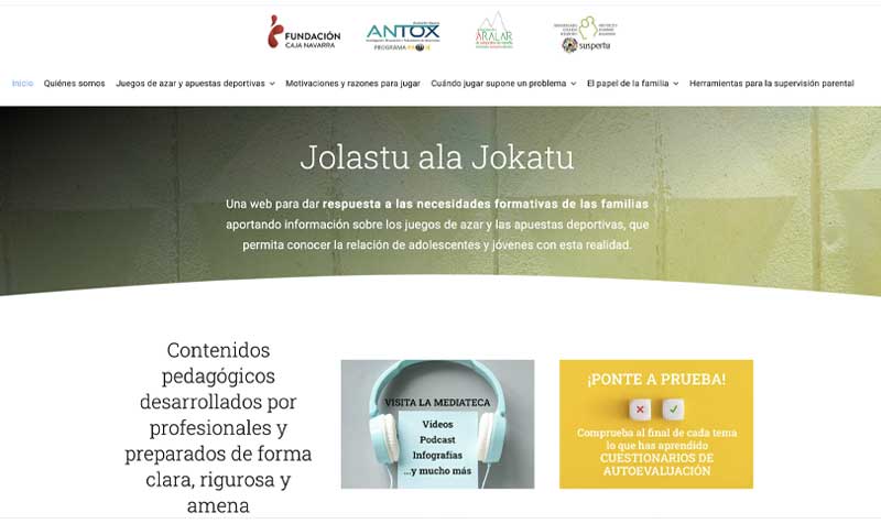 Jolastu ala Jokatu : una web para dar respuesta a las necesidades formativas de las familias aportando información sobre los juegos de azar y las apuestas deportivas, que permita conocer la relación de adolescentes y jóvenes con esta realidad.